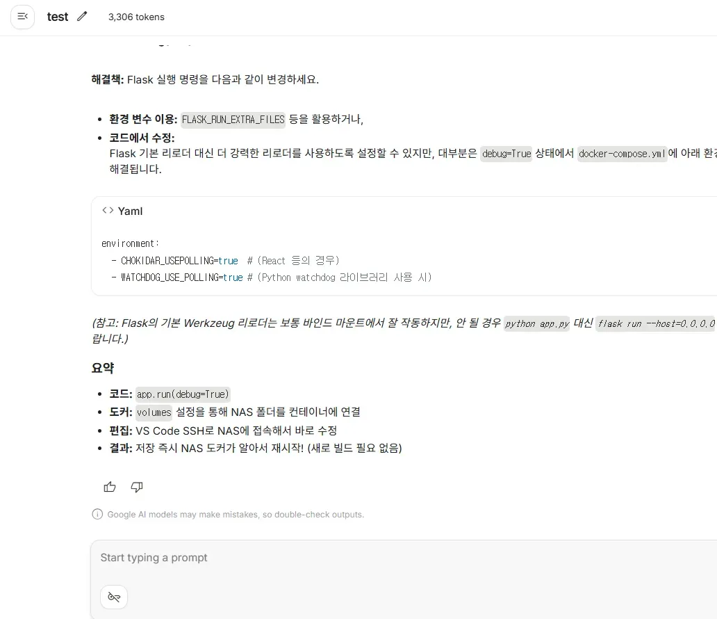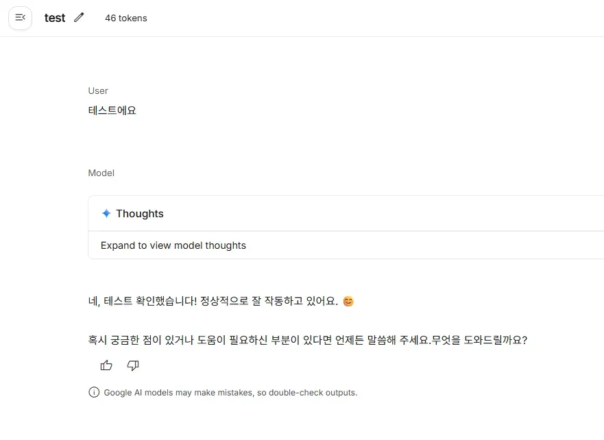 채팅 파일 내용을 덮어쓴 후 AI Studio에서 채팅창을 확인하면 원하는 내용이 적용된 것을 확인할 수 있다.