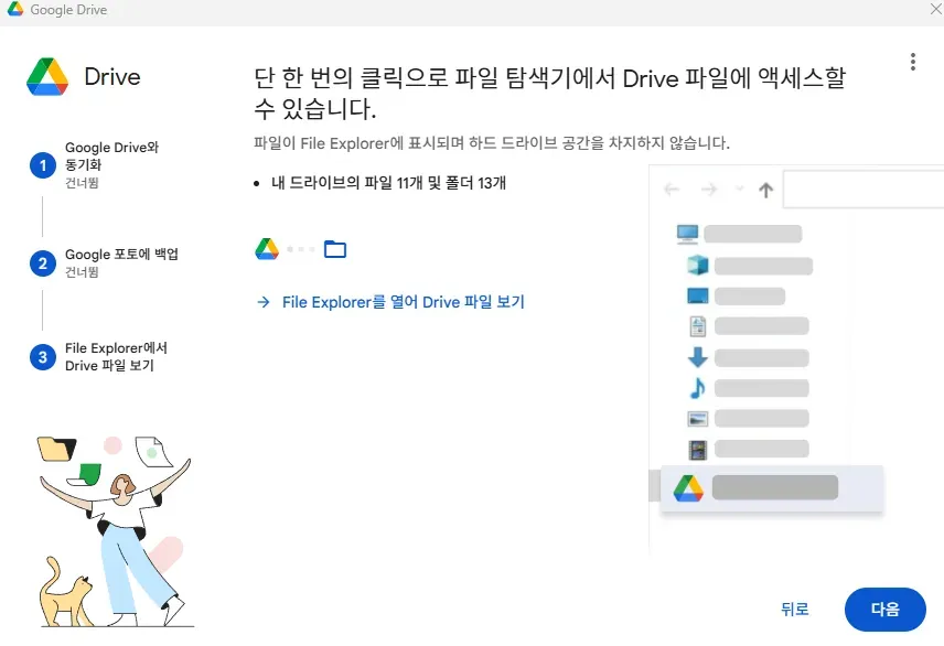 마지막 단계에서 File Explorer로 Drive 파일에 액세스할 수 있음을 보여준다.