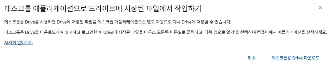 구글 드라이브에서 아무 파일의 우측의 ... - 연결 앱 - 내 컴퓨터의 앱 버튼을 클릭하면 로컬 PC 에 구글 드라이브 데스크탑 앱을 설치할 수 있다.