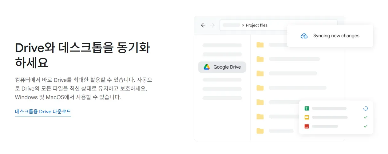 데스크톱용 Drive 다운로드 버튼을 클릭하여 설치 파일을 다운로드한다.