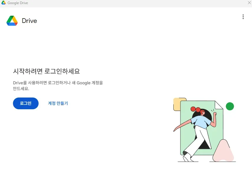 설치 후 실행하면 구글 드라이브를 이용하기 위해 구글 계정으로 로그인하는 과정이 필요하다.