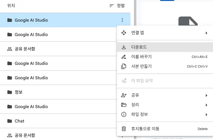 채팅 파일은 기본적으로 드라이브 최상단 경로의 Google AI Stuiod 폴더에 저장된다.